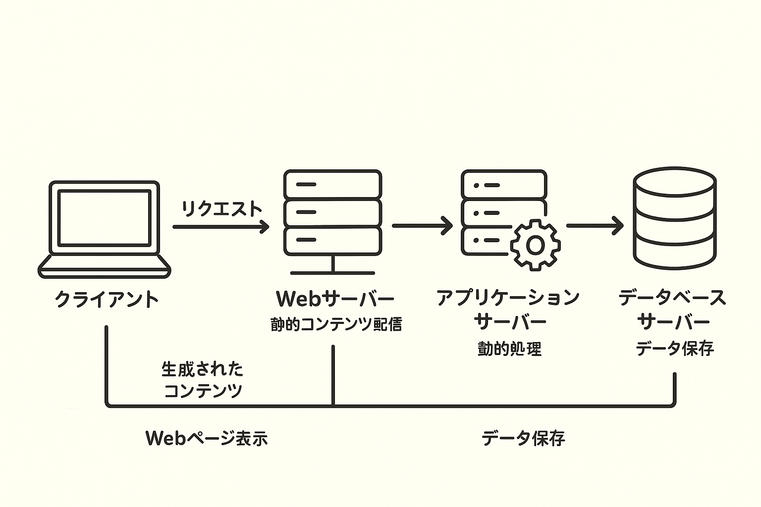 実は、Webサイトの裏側では、複数のサーバーが連携して動いています。サーバーは大きく分けて2つの役割に分けることができます。